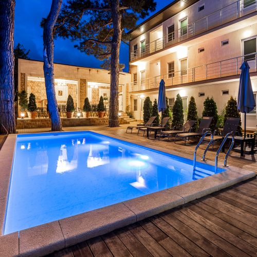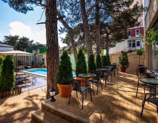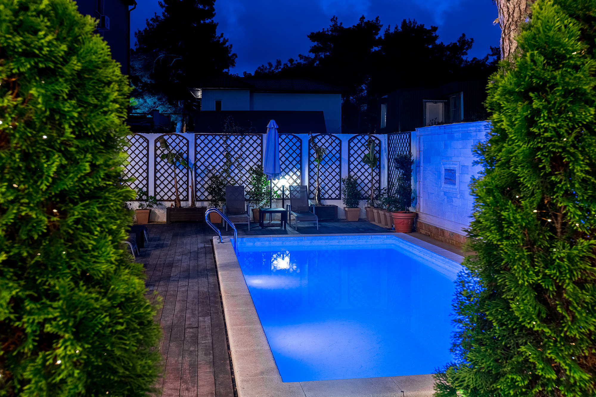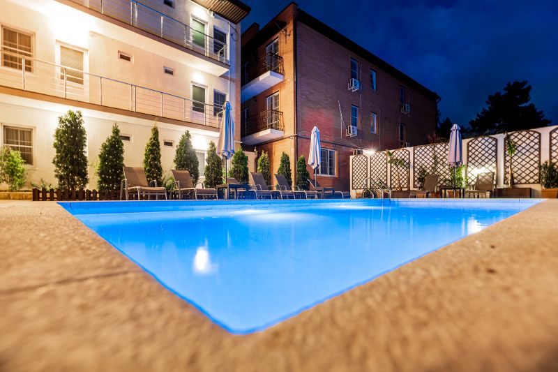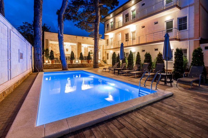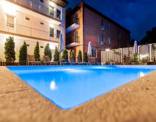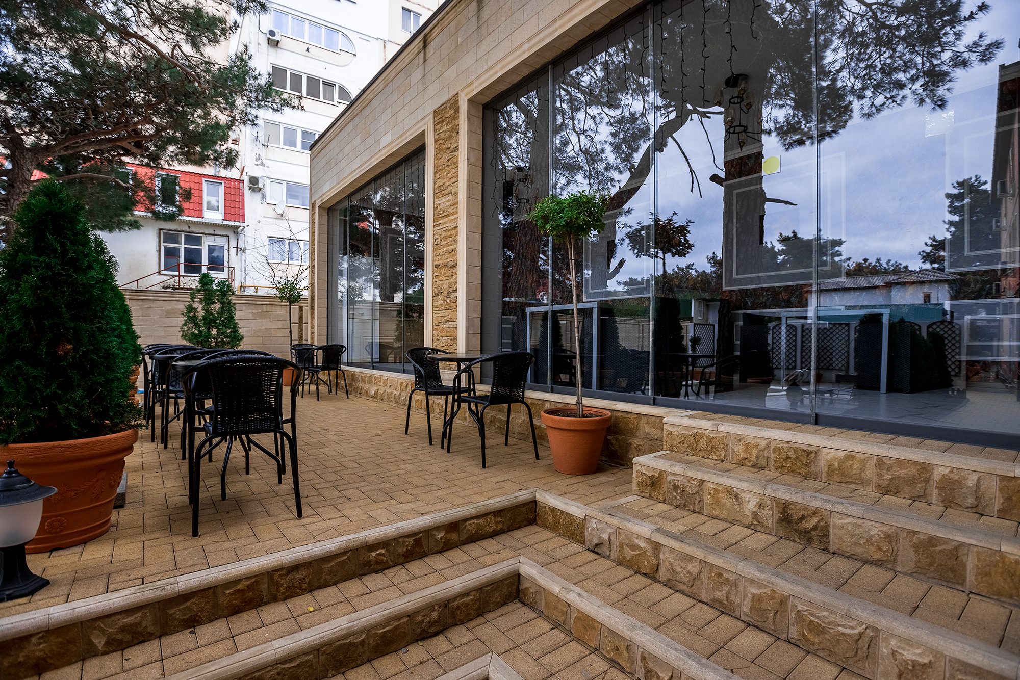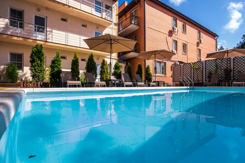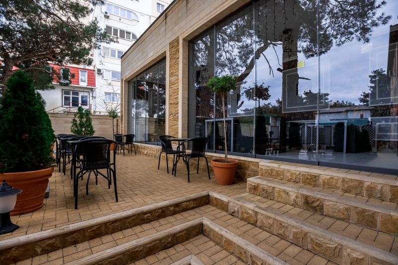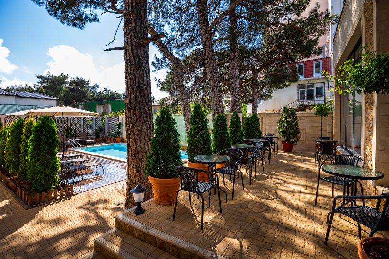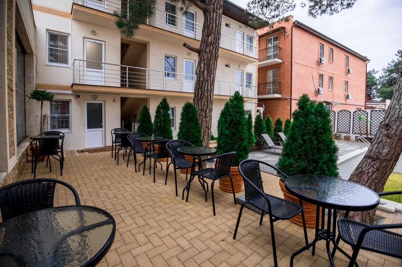 Для удобства отдыхающих в гостевом доме оборудована общая кухня с посудой, есть зона для барбекю. Так же на территории находится пицца-бар «Legends» - это заведение, которое мгновенно покоряет сердца посетителей своим уникальным стилем и вкуснейшими блюдами. Во дворе располагается бассейн, а рядом с ним – настил из натурального дерева и крытая терраса. Среди услуг – интернет и парковка.